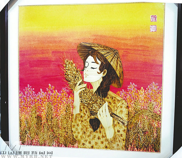 那是2005年的春天,龍怡珍隨丈夫走親戚。在親戚家的墻上,龍怡珍取下一頂有麥稈拼接花朵裝飾的草帽向他問(wèn)個(gè)不停。此時(shí),她還是三臺(tái)棉紡廠的一名幼兒園老師。此后,龍怡珍開(kāi)始跟隨親戚學(xué)習(xí)麥稈畫(huà)的簡(jiǎn)單制作方法,偶爾教幼兒園的小朋友制作手工。
