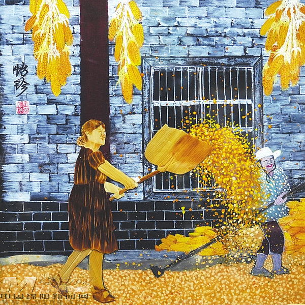 雖然有國(guó)畫(huà)功底,但對(duì)于龍怡珍來(lái)說(shuō),學(xué)習(xí)麥稈畫(huà)還是給她帶來(lái)了不小的挑戰(zhàn)。“制作一幅精致的麥稈畫(huà),過(guò)程精細(xì)而繁瑣。首先要選材,依次是漂白、構(gòu)圖、剪裁、粘貼、燙染等30多道工序。”龍怡珍說(shuō),在所有工序中,最難的就是燙。烙鐵需要通過(guò)溫度、力度的精準(zhǔn)把控來(lái)刻畫(huà)線(xiàn)條、堆砌細(xì)節(jié),在圖形上燙出深淺不一的顏色,形成明暗對(duì)比。