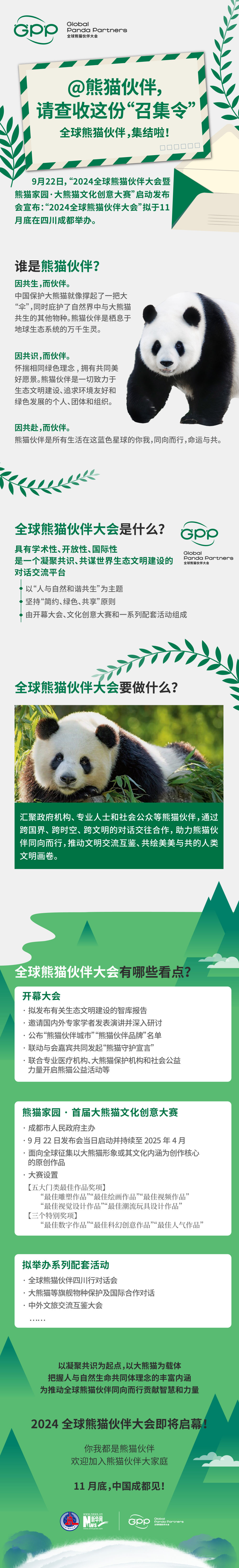 全球熊貓伙伴,集結(jié)啦!9月22日,“2024全球熊貓伙伴大會(huì)暨熊貓家園·大熊貓文化創(chuàng)意大賽”啟動(dòng)發(fā)布會(huì)宣布:“2024全球熊貓伙伴大會(huì)”擬于11月底在四川成都舉辦。誰(shuí)是熊貓伙伴?什么是全球熊貓伙伴大會(huì)?一圖帶你了解。