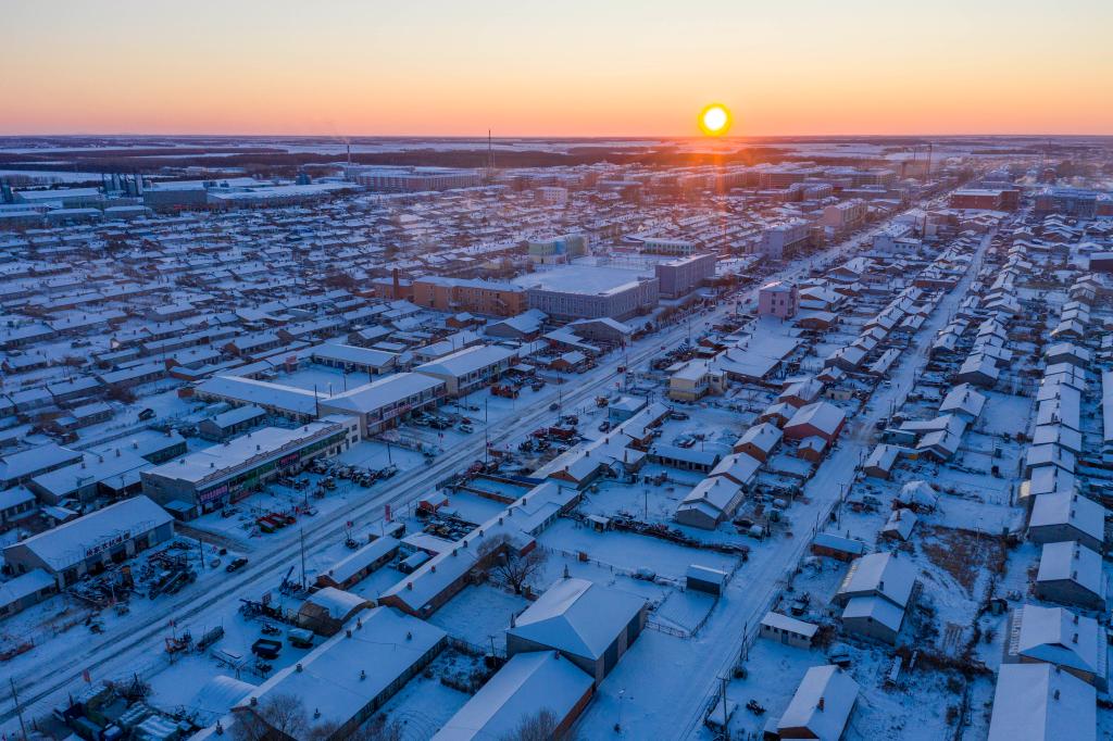 這是2019年12月18日拍攝的黑龍江省撫遠市寒蔥溝鎮(zhèn)紅旗村一角(無人機照片)。新華社發(fā)(謝劍飛攝)