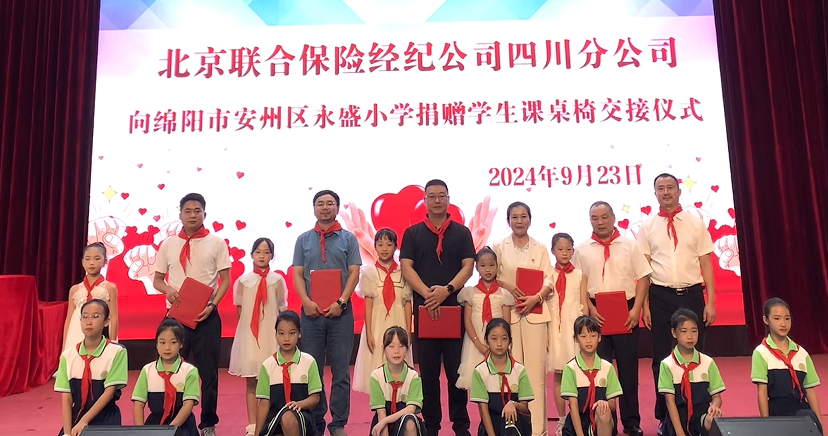 捐贈(zèng)現(xiàn)場(chǎng),北京聯(lián)合保險(xiǎn)經(jīng)紀(jì)公司四川分公司向永盛小學(xué)定向捐贈(zèng)升降課桌椅若干。雙方代表在全場(chǎng)師生見(jiàn)證下舉行了捐贈(zèng)交接儀式。