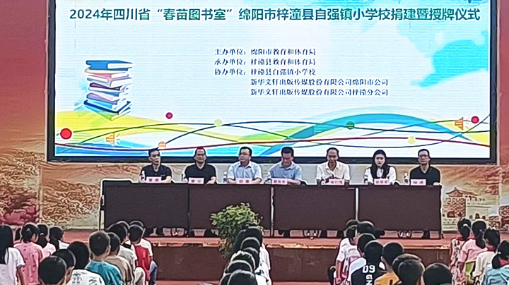 9月24日,2024年四川省“春苗圖書(shū)室”捐建暨授牌儀式在梓潼縣自強(qiáng)鎮(zhèn)小學(xué)舉行。綿陽(yáng)市教育和體育局二級(jí)調(diào)研員胥執(zhí)東,綿陽(yáng)市教育和體育局政教科團(tuán)委書(shū)記官平平,梓潼縣委教育工委委員、縣教體局黨組副書(shū)記、副局長(zhǎng)張仁寶,新華文軒綿陽(yáng)市公司副總經(jīng)理仰勇,新華文軒梓潼分公司經(jīng)理曹勇,縣教體局有關(guān)領(lǐng)導(dǎo)出席了捐贈(zèng)儀式,自強(qiáng)小學(xué)全體師生參加了捐贈(zèng)儀式。