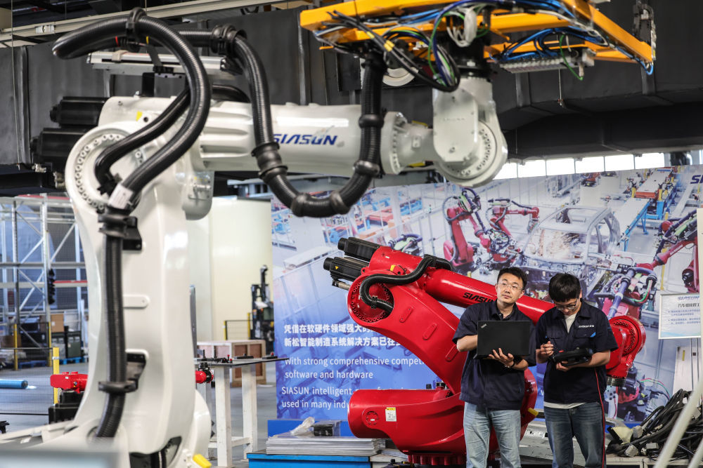 2024年6月3日,沈陽新松機(jī)器人自動化股份有限公司,機(jī)器人研發(fā)工程師在調(diào)試。 新華社記者 潘昱龍 攝