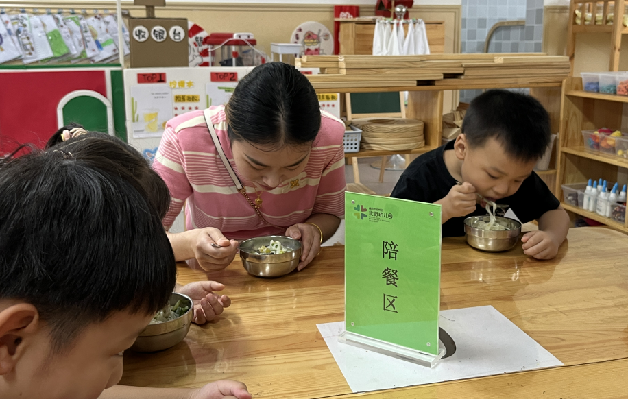 之后,家長走進各班級陪餐,親身體驗孩子們的日常飲食。家長用耳傾聽、用眼觀察、用口品味、用心感受……一道道嚴謹?shù)墓ば蜃尲议L感受到幼兒園對幼兒膳食安全的高度重視,一份份香噴噴的飯食讓家長建立起對幼兒園的認可和信任。