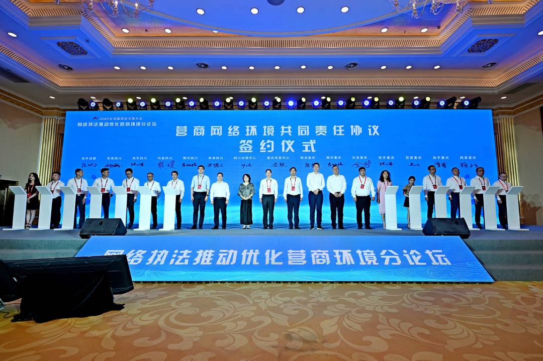 面對(duì)新形勢(shì)新任務(wù),四川也在探索構(gòu)建清朗網(wǎng)絡(luò)空間的新路徑。在8月29日舉行的2024年中國(guó)網(wǎng)絡(luò)文明大會(huì)網(wǎng)絡(luò)執(zhí)法推動(dòng)優(yōu)化營(yíng)商環(huán)境論壇上,四川省網(wǎng)絡(luò)治理研究中心、重慶市互聯(lián)網(wǎng)違法和不良信息舉報(bào)中心,聯(lián)合川渝兩地多家商業(yè)網(wǎng)站平臺(tái),簽訂《營(yíng)商網(wǎng)絡(luò)環(huán)境共同責(zé)任協(xié)議》,開(kāi)啟了打造優(yōu)化營(yíng)商網(wǎng)絡(luò)環(huán)境共同體的全新嘗試。