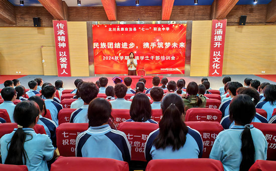 綿陽新聞網(wǎng)訊 為了進一步深化民族團結(jié)進步教育,全面提升學(xué)生干部的綜合素質(zhì)與能力,培養(yǎng)更多優(yōu)秀的民族學(xué)生干部,9月26日,北川羌族自治縣“七一”職業(yè)中學(xué)在學(xué)術(shù)報告廳舉行了以“民族團結(jié)進步,攜手筑夢未來”為主題的2024年秋學(xué)生干部培訓(xùn)會。培訓(xùn)會由德育處副主任嚴福琴主持,黨總支專職副書記沈譽晗主講。學(xué)生管理公司、民族聯(lián)誼會、校團委、國旗隊、管理公司宿管部所有干部參加培訓(xùn)。