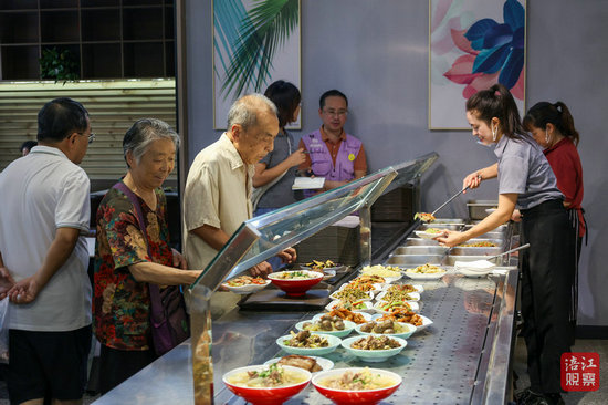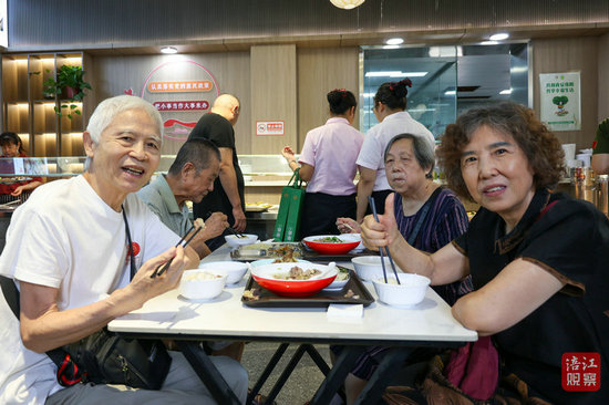 清炒菠菜、麻婆豆腐、酸菜鴨血、青筍肉片……不久前,記者在南河路幸福餐廳看到,老人們?nèi)宄扇海鎸?duì)10余種葷素搭配的家常菜品仔細(xì)挑選。“現(xiàn)在不僅菜品豐富了,價(jià)格還合理。”78歲的王婆婆和老伴兒對(duì)幸福餐廳贊不絕口。