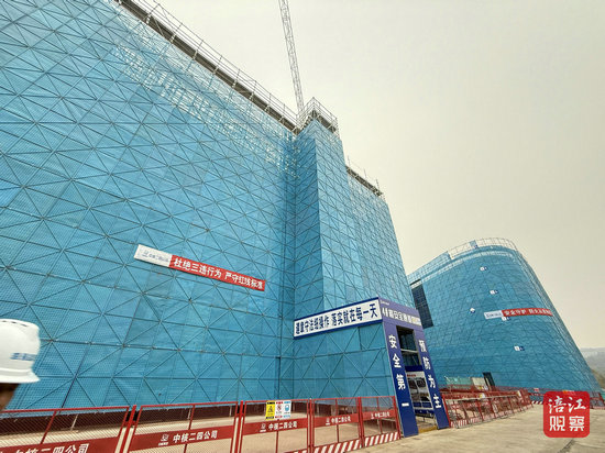 項(xiàng)目建設(shè)現(xiàn)場(chǎng)塔吊林立、機(jī)聲和鳴,工人們正在加緊進(jìn)行水泥澆筑、鋼筋綁扎等工作,現(xiàn)場(chǎng)一派熱火朝天的施工景象。