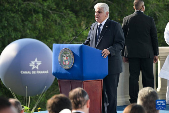 12月31日,巴拿馬總統(tǒng)穆利諾在首都巴拿馬城舉行的正式收回巴拿馬運(yùn)河主權(quán)25周年紀(jì)念活動(dòng)上發(fā)表講話。新華社記者 陳昊佺 攝