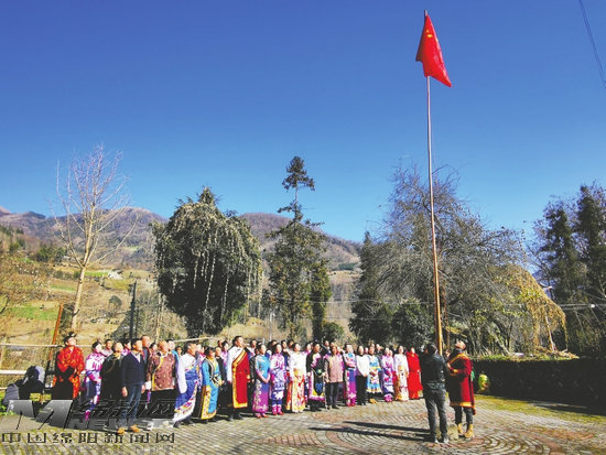 1月1日,在北川桃龍藏族鄉(xiāng)鐵龍村民族團(tuán)結(jié)廣場,藏、羌、漢、回等各族群眾身著民族服裝,舉行升國旗儀式。大家在新年的第一天,祝福偉大祖國更加繁榮昌盛,共話未來美好生活。