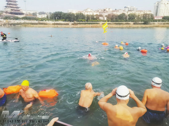 1月1日,我市300名冬泳健兒橫渡涪江,喜迎新年到來。冬泳健兒中,年齡最大的83歲,最小的9歲,健兒們在涪江中暢游的身姿為冬日綿陽添上了一道亮麗的風(fēng)景。 (李哲熙 攝影報道)