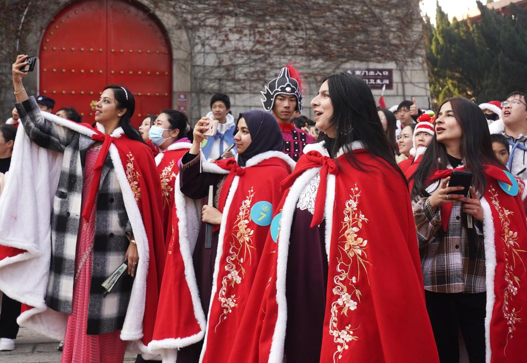 1月1日,一些外國游客在南昌滕王閣景區(qū)參觀游覽。新華社記者 萬象 攝