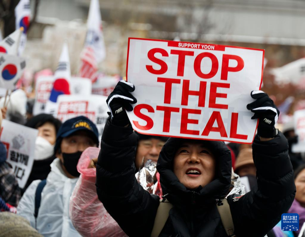 1月5日,尹錫悅支持者在位于韓國首爾的總統(tǒng)官邸附近參加集會反對逮捕總統(tǒng)尹錫悅。新華社發(fā)(全休相攝)