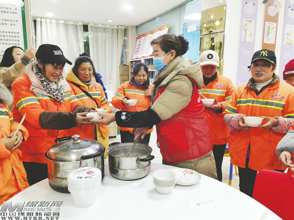 小浮橋社區(qū)志愿者為環(huán)衛(wèi)工人熬制臘八粥