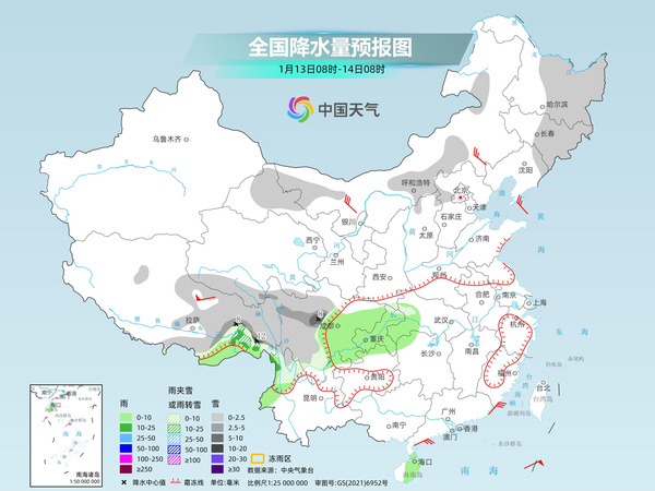 今明兩天(1月13日至14日),西南地區(qū)雨雪天氣將明顯增多,并逐漸向東擴展,后天起全國大部又將回歸晴朗干燥的天氣格局。同時,新一股較強冷空氣上線,中東部多地將迎來明顯降溫,部分地區(qū)降溫幅度可達8℃以上。