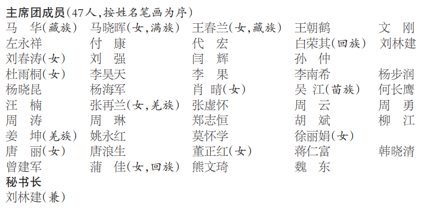 綿陽市第八屆人民代表大會第五次會議主席團和秘書長名單