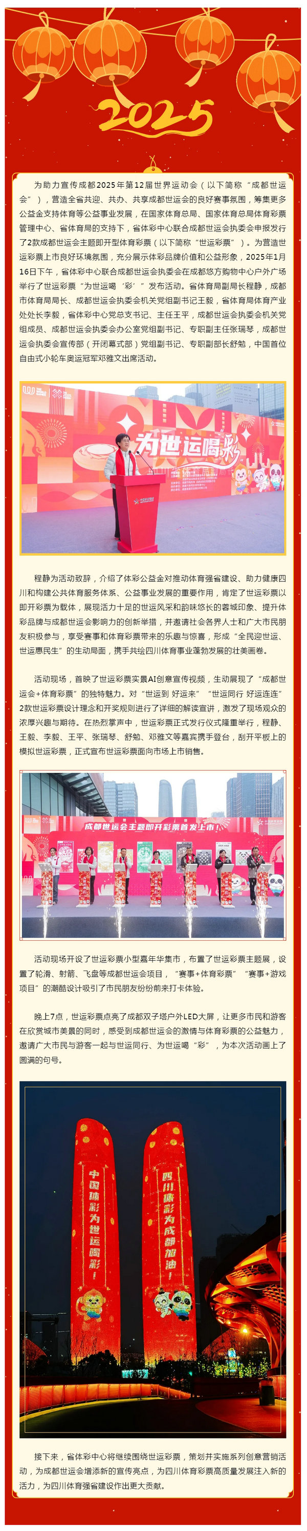 成都世運(yùn)會(huì)主題即開(kāi)型體育彩票成功發(fā)布上市