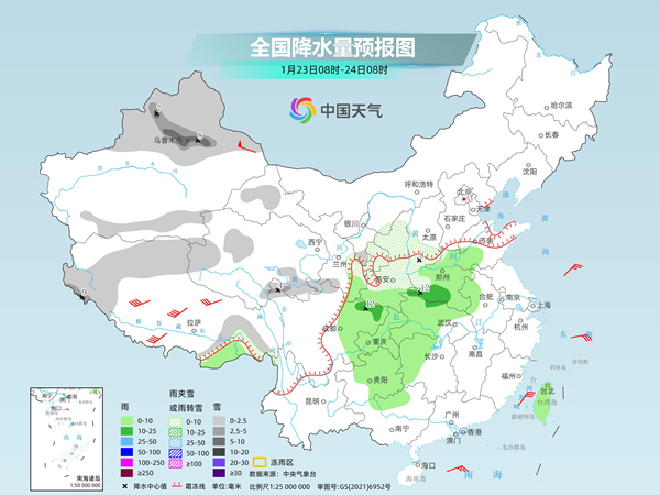 明天,新疆北疆大部和南疆高海拔山區(qū)、西藏西部和東南部、青海南部、甘肅東部、寧夏南部、陜西中北部、山西南部、河南西部山區(qū)等地部分地區(qū)有小到中雪或雨夾雪,其中,新疆沿天山地區(qū)北側(cè)、西藏西南部等地部分地區(qū)有大雪。陜西南部、四川中東部、重慶、貴州中東部、湖北中西部、湖南西部、河南、安徽西北部、山東西南部、臺(tái)灣島等地部分地區(qū)有中雨。