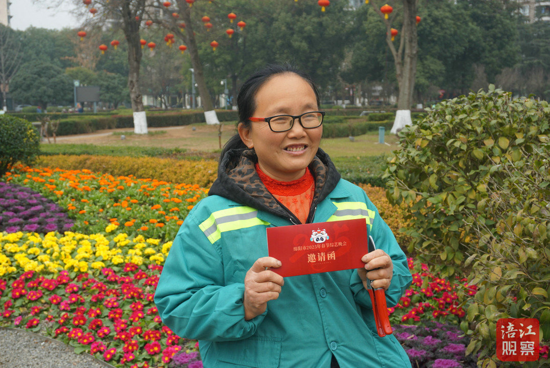同一時間,在相距25公里之外的青年廣場,當記者帶著綿陽春晚邀請函來到這里時,綠化工人彭小明正在修剪一處綠化景觀,不遠處正在懸掛裝飾燈籠的是負責城市照明設(shè)施維護的宋戈,他所在的班組已完成了14萬個燈籠的懸掛……當被問及對新年的期待時,他們表示,“謝謝綿陽市春晚的邀請。2025年會繼續(xù)用雙手裝點城市面容,讓城市像花園一樣干凈,讓市民生活越來越美好。”