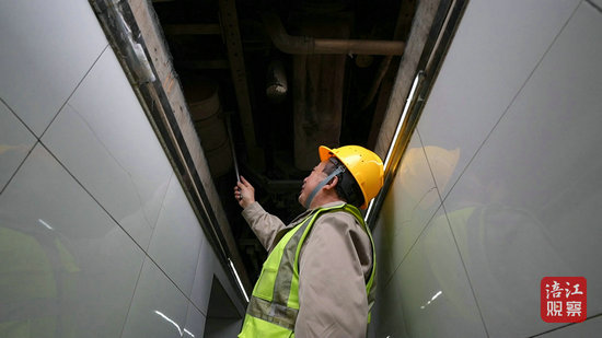 隨后,他又一手拿電子軌距尺,一手持記錄儀,躬身在鐵軌間測量道岔的幾何尺寸。曾科告訴記者,隨著列車的運行,道岔的幾何尺寸會發(fā)生改變,定期檢查是為了確保道岔的幾何尺寸在允許的范圍之內(nèi),保證列車安全平穩(wěn)運行。