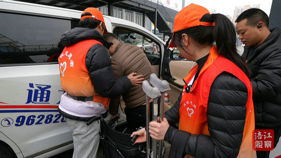 “陳姐,這邊有位從深圳返綿的旅客腿腳不方便,需要一輛輪椅。”收到另一名志愿者的求助信息后,陳丁綺很快找來一輛輪椅,倆人合力將旅客推出站,并送上一輛順風車。