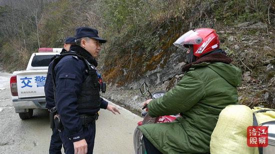 米明告訴記者,蒲家溝這段路是他們巡邏的必查點,尤其春節(jié)臨近,隨著返鄉(xiāng)人員增加,過往的摩托車、小型車輛增多,他們也增加了巡邏頻次。