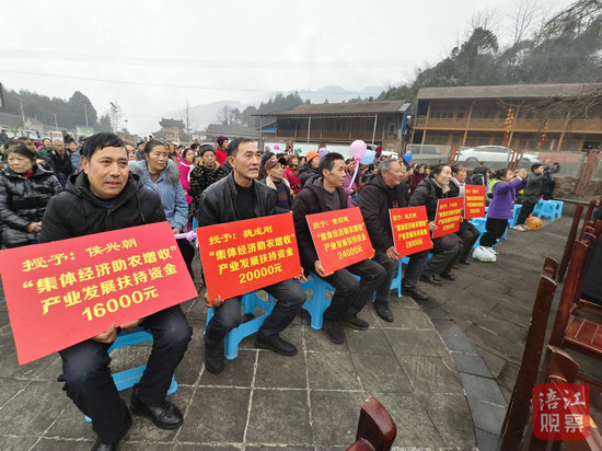 儀式上,歡快的舞蹈和精彩變臉節(jié)目表演完后,迎來了當(dāng)天的重頭戲——共計(jì)230余萬元的“集體經(jīng)濟(jì)助農(nóng)增收”產(chǎn)業(yè)發(fā)展扶持資金,被依次發(fā)放到了村民們手中。簽名、按手印……村民們面帶笑容,秩序井然地共同“品嘗”集體經(jīng)濟(jì)發(fā)展的“甜蜜果實(shí)”,現(xiàn)場氣氛十分熱烈。