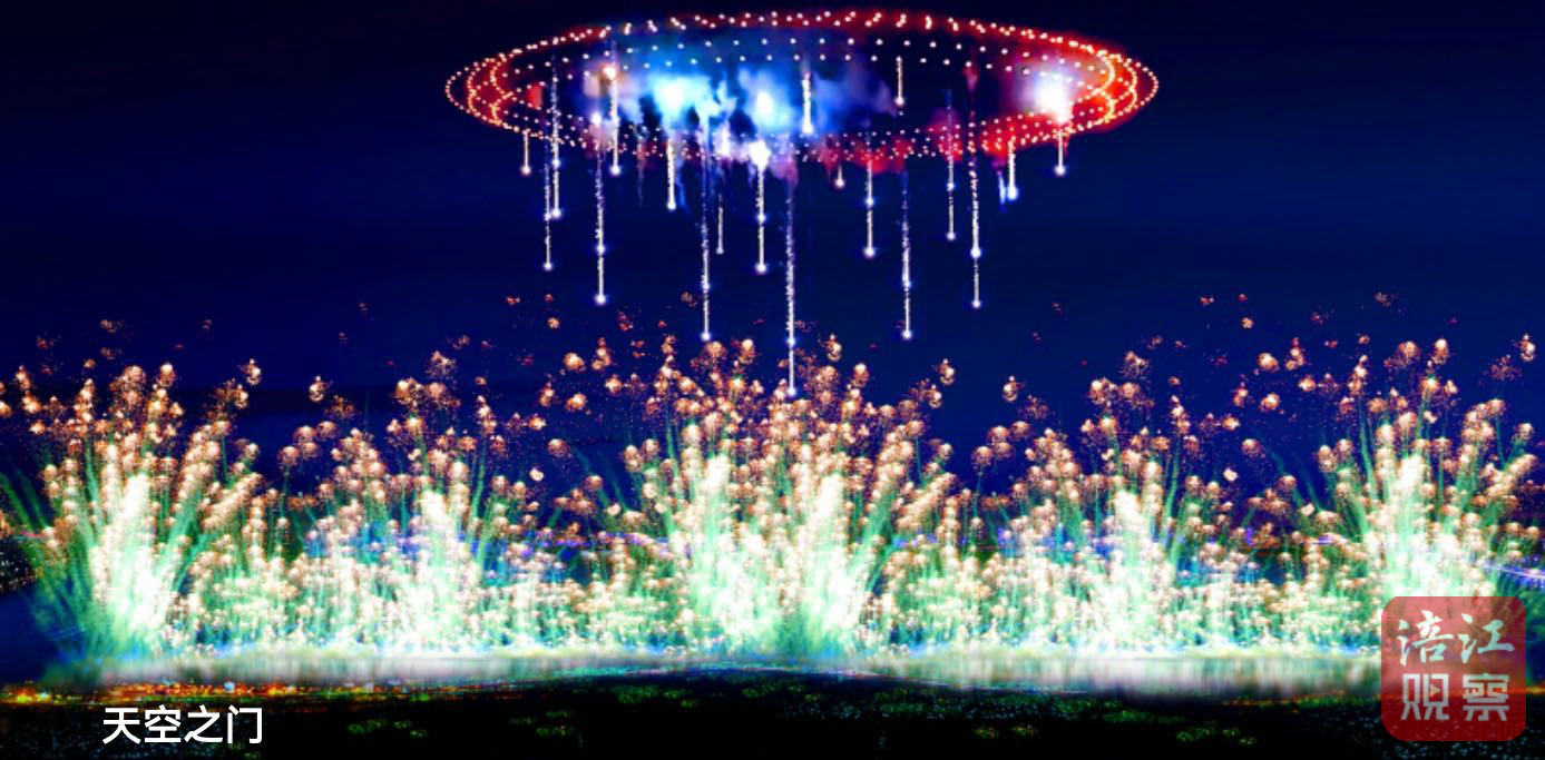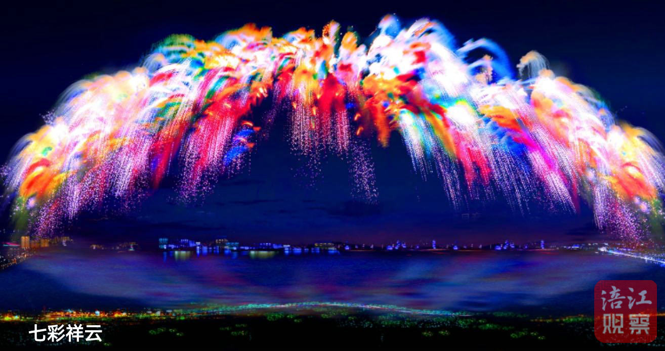以水為鏡、以夜空為畫卷、以焰火為筆墨,今年的煙花晚會聚焦“中國年、中國味、中國范”,從煙花燃放編排到無人機造型設計,精心設計了諸多特別效果,如“七彩祥云”“天空之門”等,實現技術與美學的融合。