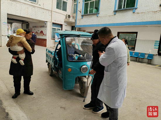 春節(jié)期間,除了日常的門診工作,馬角鎮(zhèn)衛(wèi)生院的醫(yī)護(hù)人員還承擔(dān)著入戶檢查的任務(wù)。他們翻山越嶺深入轄區(qū)的各個(gè)村落,為行動(dòng)不便的患者和老年人提供上門醫(yī)療服務(wù)。