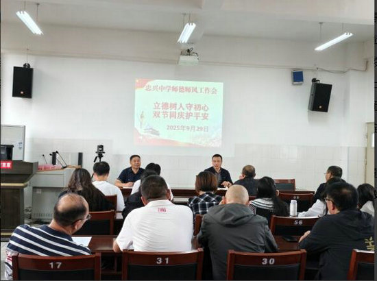 綿陽新聞網(wǎng)訊 為了深入貫徹落實上級教育部門關(guān)于師德師風(fēng)建設(shè)和維護安全穩(wěn)定的要求,強化教師隊伍職業(yè)道德素養(yǎng),營造安全和諧的校園環(huán)境,9月29日,游仙區(qū)忠興中學(xué)召開了以“立德樹人守初心,雙節(jié)同慶護平安”為主題的師德師風(fēng)暨安全穩(wěn)定工作會。