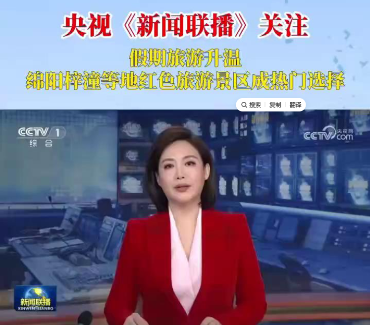 央視《新聞聯(lián)播》關(guān)注:綿陽梓潼等地紅色旅游景區(qū)成熱門選擇