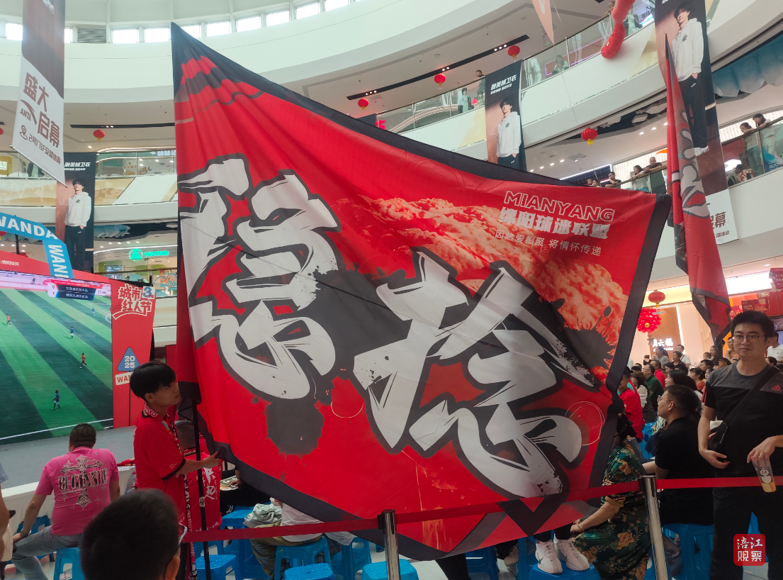 14時(shí)30分左右,在經(jīng)開(kāi)萬(wàn)達(dá)廣場(chǎng),綿陽(yáng)球迷聯(lián)盟的100余名球迷早早聚集。他們身著紅色助威服、手持紅色戰(zhàn)旗圍著萬(wàn)達(dá)廣場(chǎng)巡游并高唱戰(zhàn)歌“綿陽(yáng),哦哦哦哦……”為綿陽(yáng)隊(duì)吶喊助威。戰(zhàn)旗上“綿陽(yáng)”“雄起”“穩(wěn)捻”“戰(zhàn)無(wú)不勝”等“助威詞”格外惹眼。