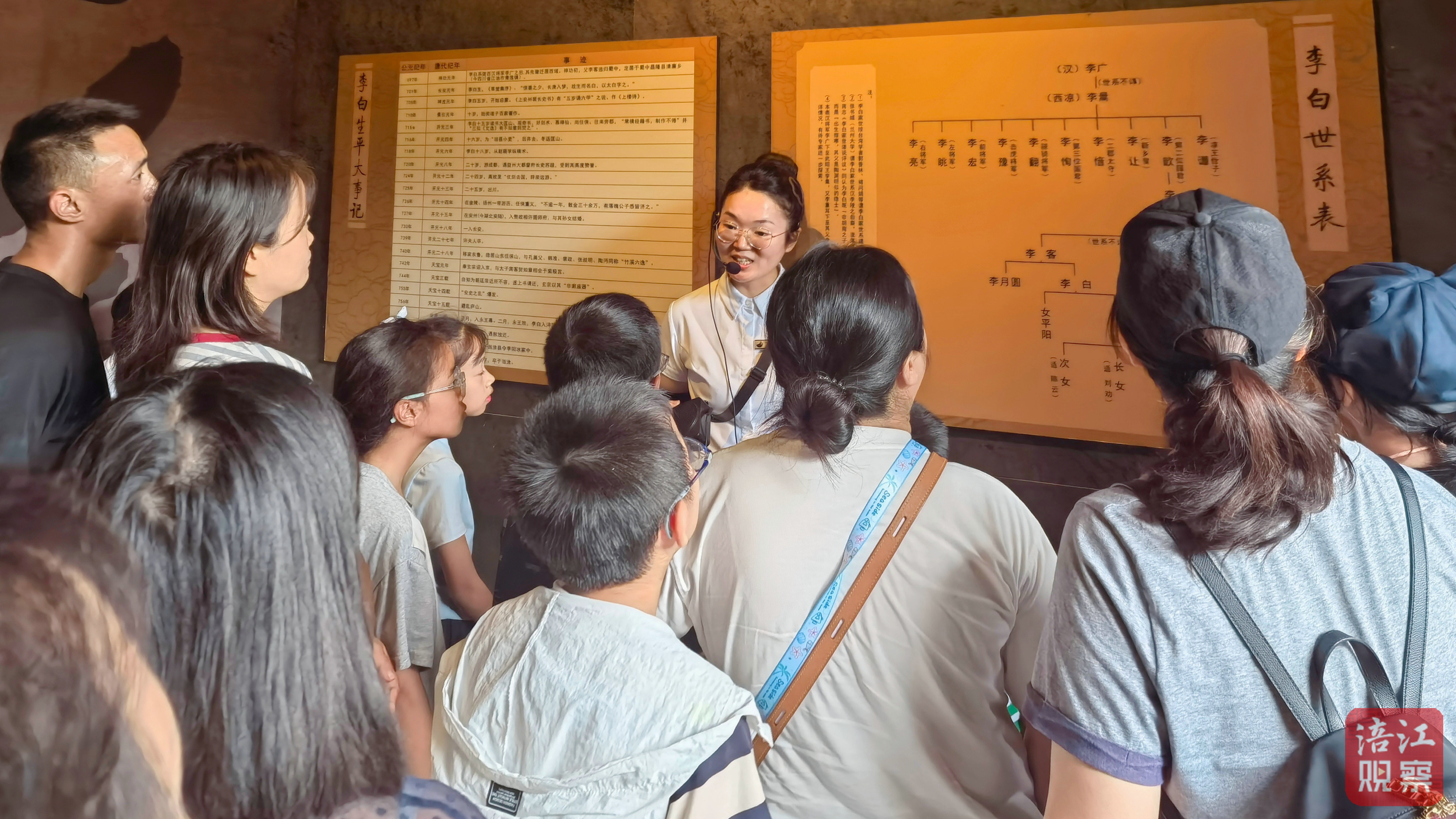 在李白紀(jì)念館內(nèi),參觀者靜心聆聽(tīng)講解,沉浸式感受詩(shī)仙文化,靜謐氛圍與深厚人文相得益彰。