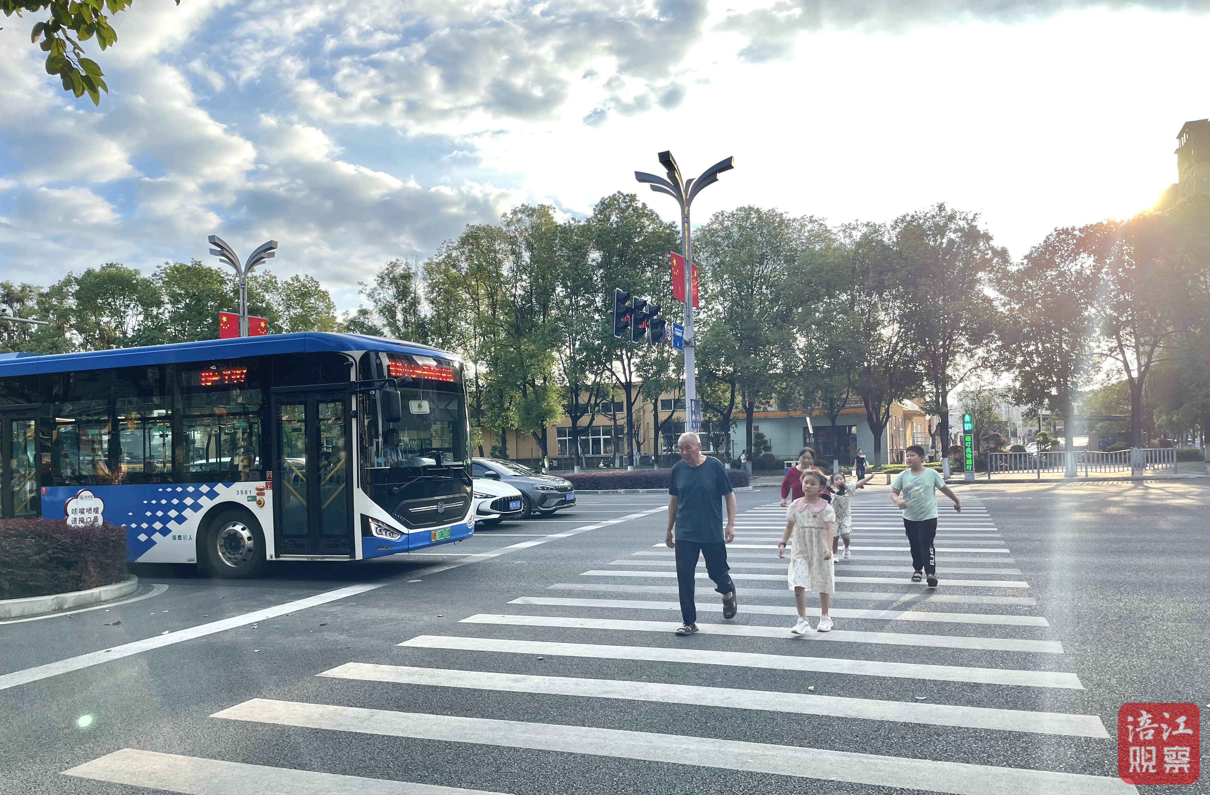 城市道路上,車(chē)輛在斑馬線(xiàn)前主動(dòng)減速禮讓?zhuān)腥艘嗫觳酵ㄟ^(guò)、默契配合。鮮艷的國(guó)旗與秋日暖陽(yáng)相映,勾勒出溫馨和諧的城市圖景。共享單車(chē)整齊停放在劃線(xiàn)區(qū)域,既彰顯市民出行素養(yǎng),也體現(xiàn)城市管理用心。