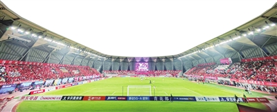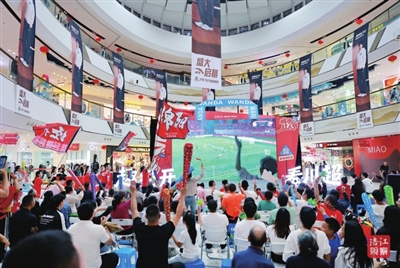 在經(jīng)開區(qū)第二觀賽點——經(jīng)開區(qū)萬達廣場,幾百雙眼睛緊盯巨幕,小吃被遺忘在手中,直到綿陽九洲長虹隊前鋒突入禁區(qū),整個現(xiàn)場頓時爆發(fā)出震耳欲聾的吶喊。