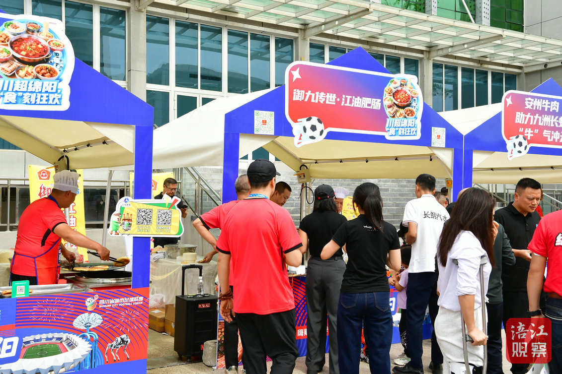 川超賽事的熱度,成為拉動綿陽消費的“催化劑”。在三臺縣體育場外,依托川超賽事打造的“樂享川超”專屬消費市集,設置助威產(chǎn)品、美食品鑒、互動體驗、綿陽好物四大功能區(qū),65個展位涵蓋農(nóng)特、非遺、家電、鞋服等品類,實現(xiàn)“觀賽+消費”無縫銜接。同時,準備了花式足球表演、NPC互動及T臺秀等消費活動,球迷憑票根可在餐飲、住宿、購物等多領域享受專屬優(yōu)惠。