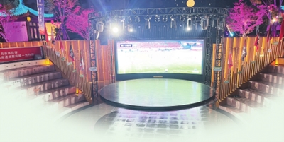 市民和游客在墨竹里街區(qū)通過大屏幕觀看川超聯賽直播。