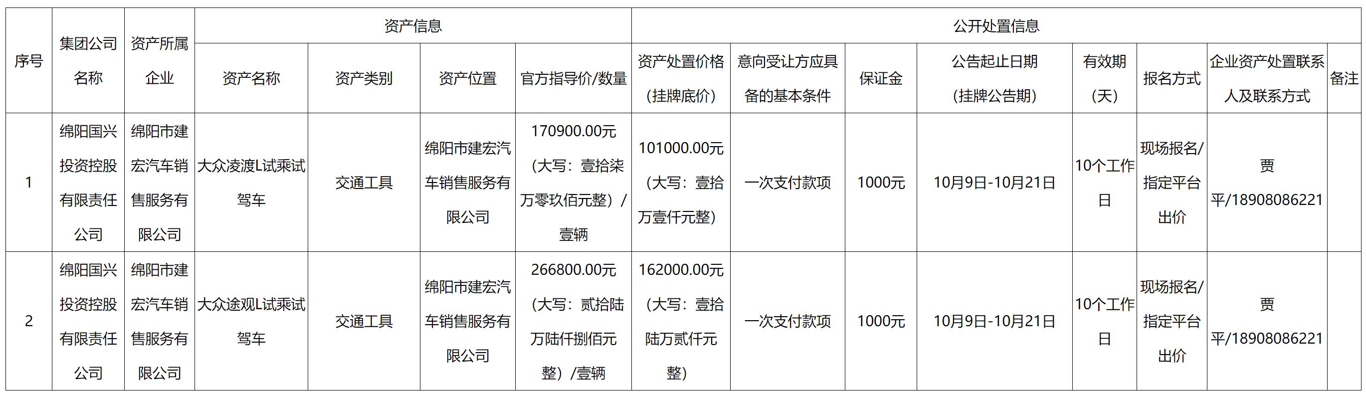 綿陽國興投資控股有限責任公司資產(chǎn)處置公告