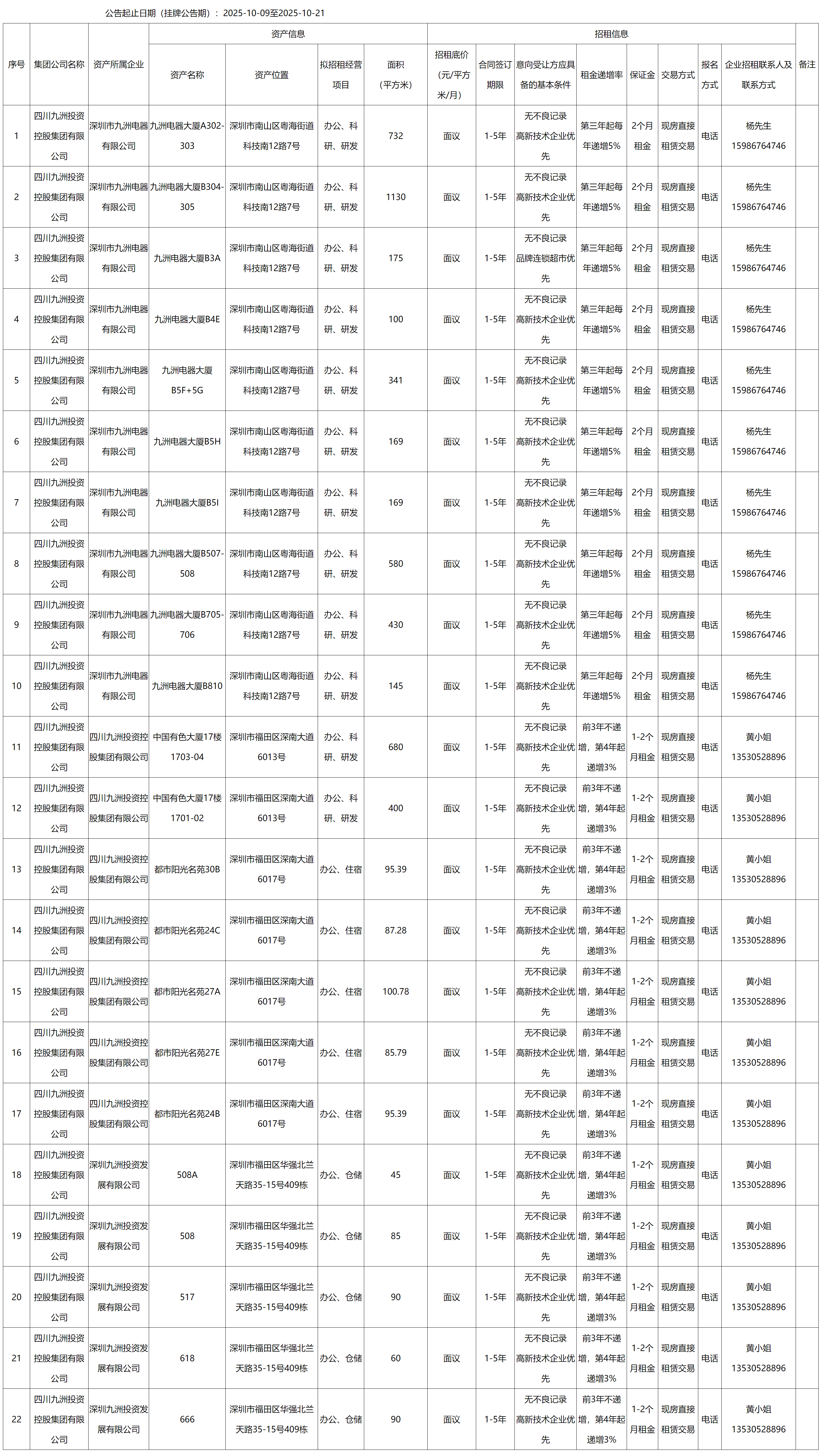 深圳市九洲光電子有限公司代管房產(chǎn)九洲電器大廈、中國(guó)有色大廈、都市陽(yáng)光名苑、桑達(dá)409棟、長(zhǎng)城大廈出租公告