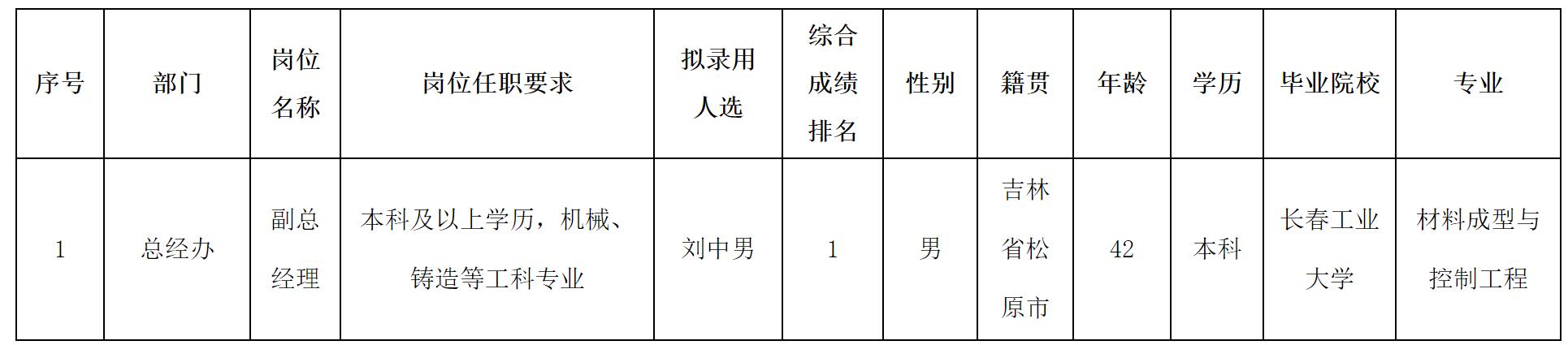 根據(jù)四川波鴻實(shí)業(yè)有限公司發(fā)布的招聘公告及招聘相關(guān)規(guī)定,經(jīng)面試、體檢等程序,擬錄用劉中男同志到四川威斯卡特工業(yè)有限公司工作,現(xiàn)予以公示,具體情況如下: