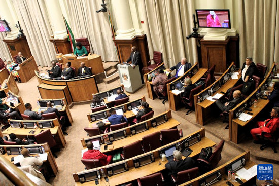 10月14日,在南非開普敦,南非總統(tǒng)拉馬福薩在南非全國省級事務(wù)委員會(即議會上院)回答議員提問。新華社發(fā)(沙姬拉·泰比 攝)