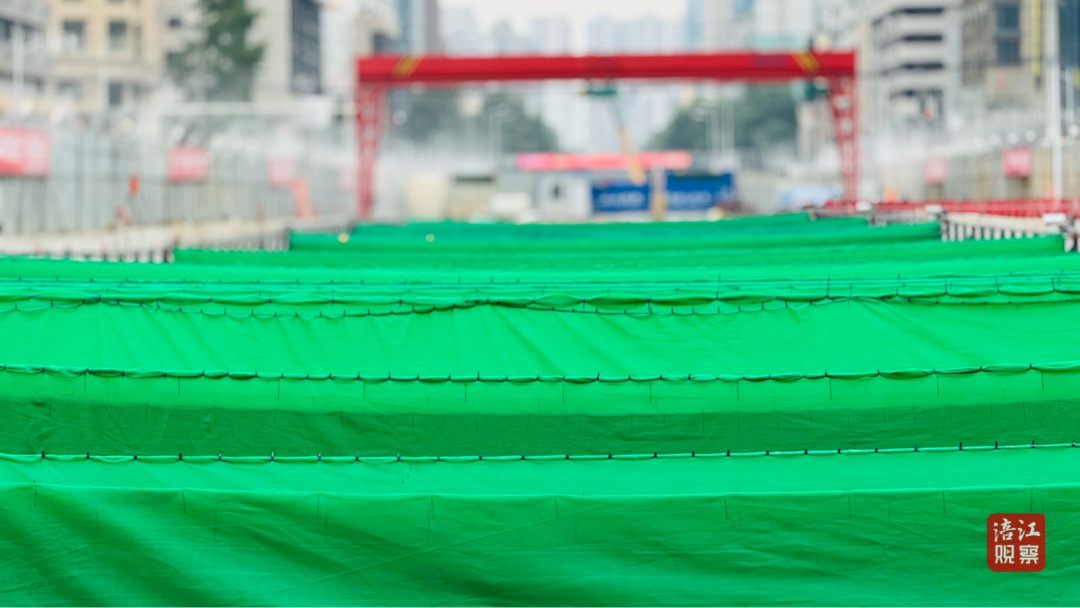 近日,綿陽火車站站前廣場(chǎng)及周邊配套設(shè)施建設(shè)項(xiàng)目臨園路下穿隧道工程的核心環(huán)保設(shè)施——基坑智能防塵天幕系統(tǒng)上線, 一鍵開啟“無塵模式”。相較于灑水、覆蓋等除塵方式,這樣主動(dòng)應(yīng)對(duì)塵土的方式,更加便捷有效可持續(xù)。