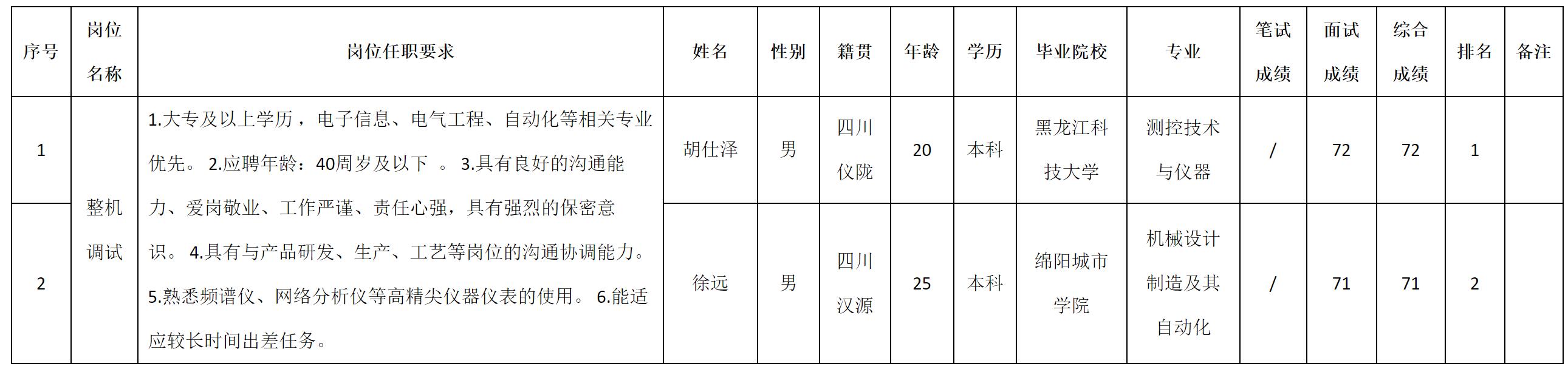 四川九洲防控科技有限責(zé)任公司關(guān)于招聘整機(jī)調(diào)試測(cè)試成績(jī)的公示