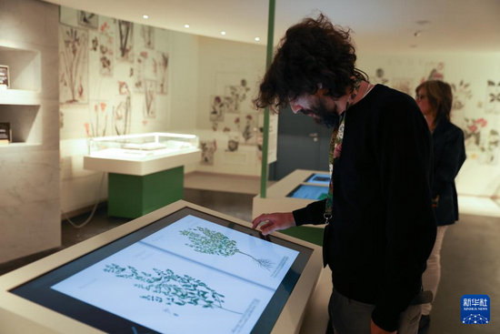 10月16日,在意大利羅馬,嘉賓在聯(lián)合國糧食農業(yè)博物館觀看植物圖鑒。