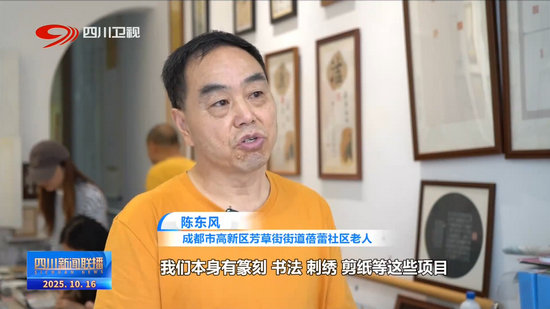 成都市高新區(qū)芳草街街道蓓蕾社區(qū)老人 陳東風(fēng):我們本身有篆刻、書法、刺繡、剪紙等這些項(xiàng)目,很受大家歡迎,這一次國慶(中秋)長假,每天的文創(chuàng)產(chǎn)品基本是全部賣光了。