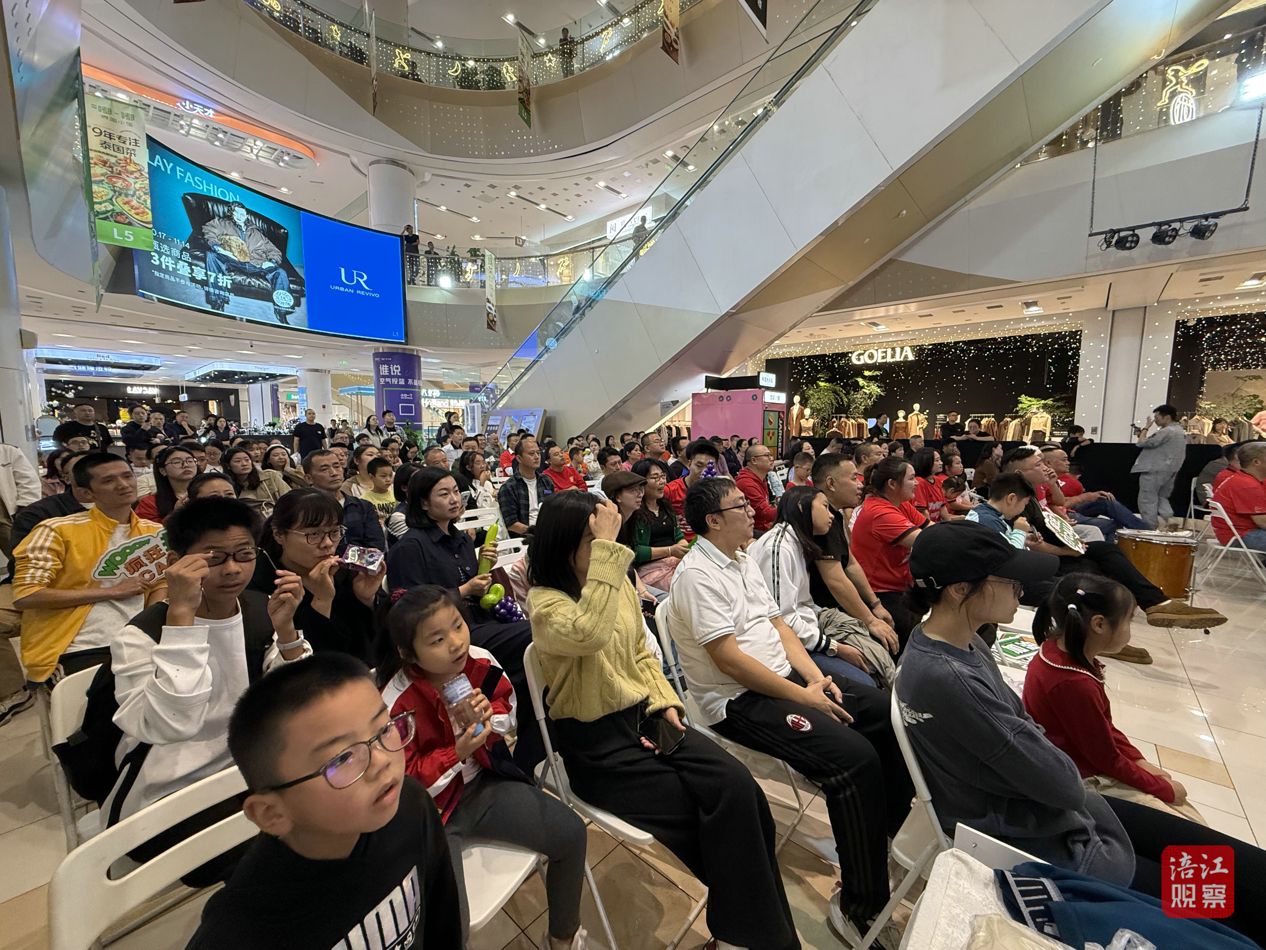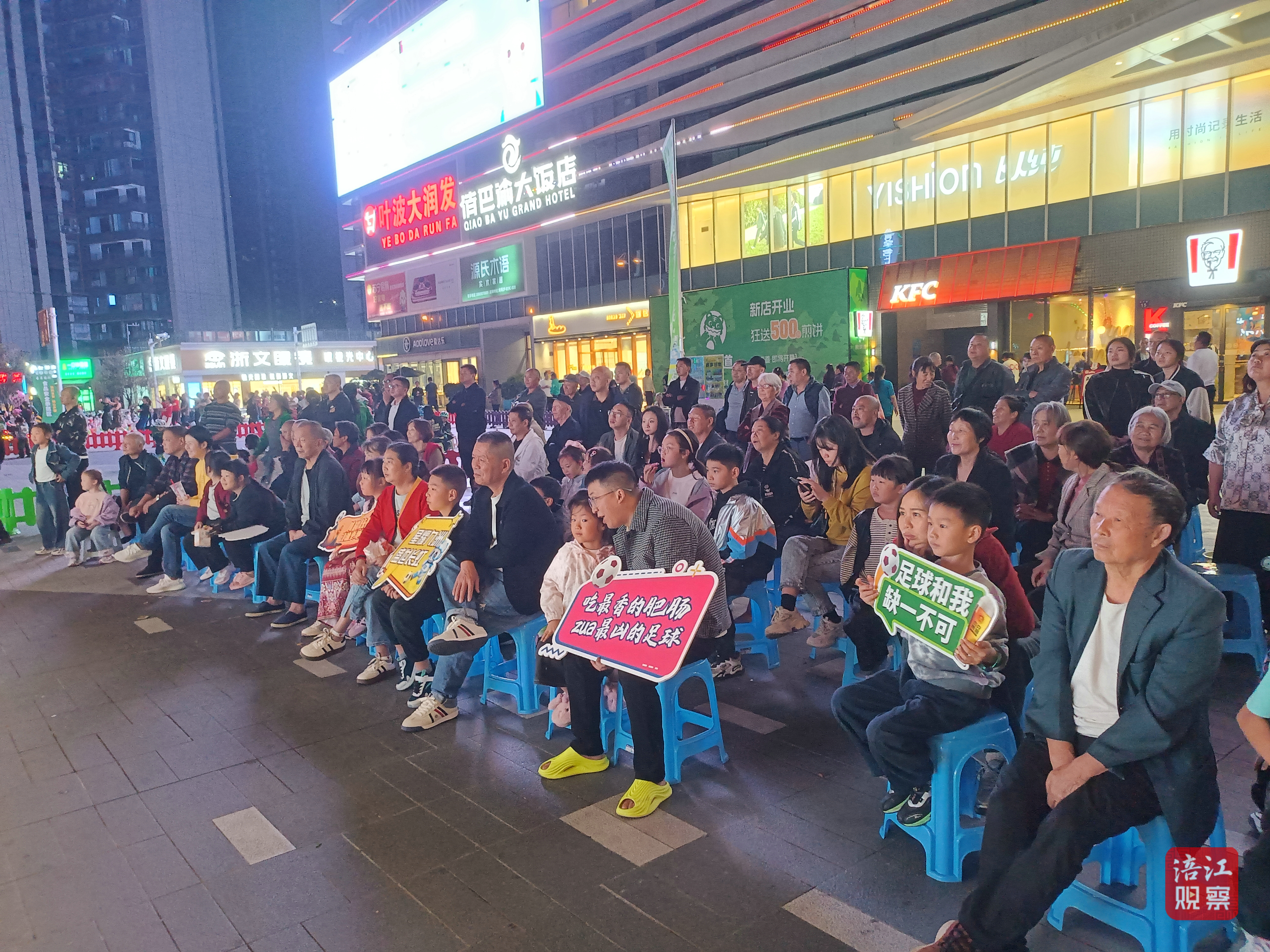 傍晚時分,球迷早早來到圣名國際購物廣場第二觀賽點,手持應(yīng)援牌,通過大屏幕為綿陽隊加油。
