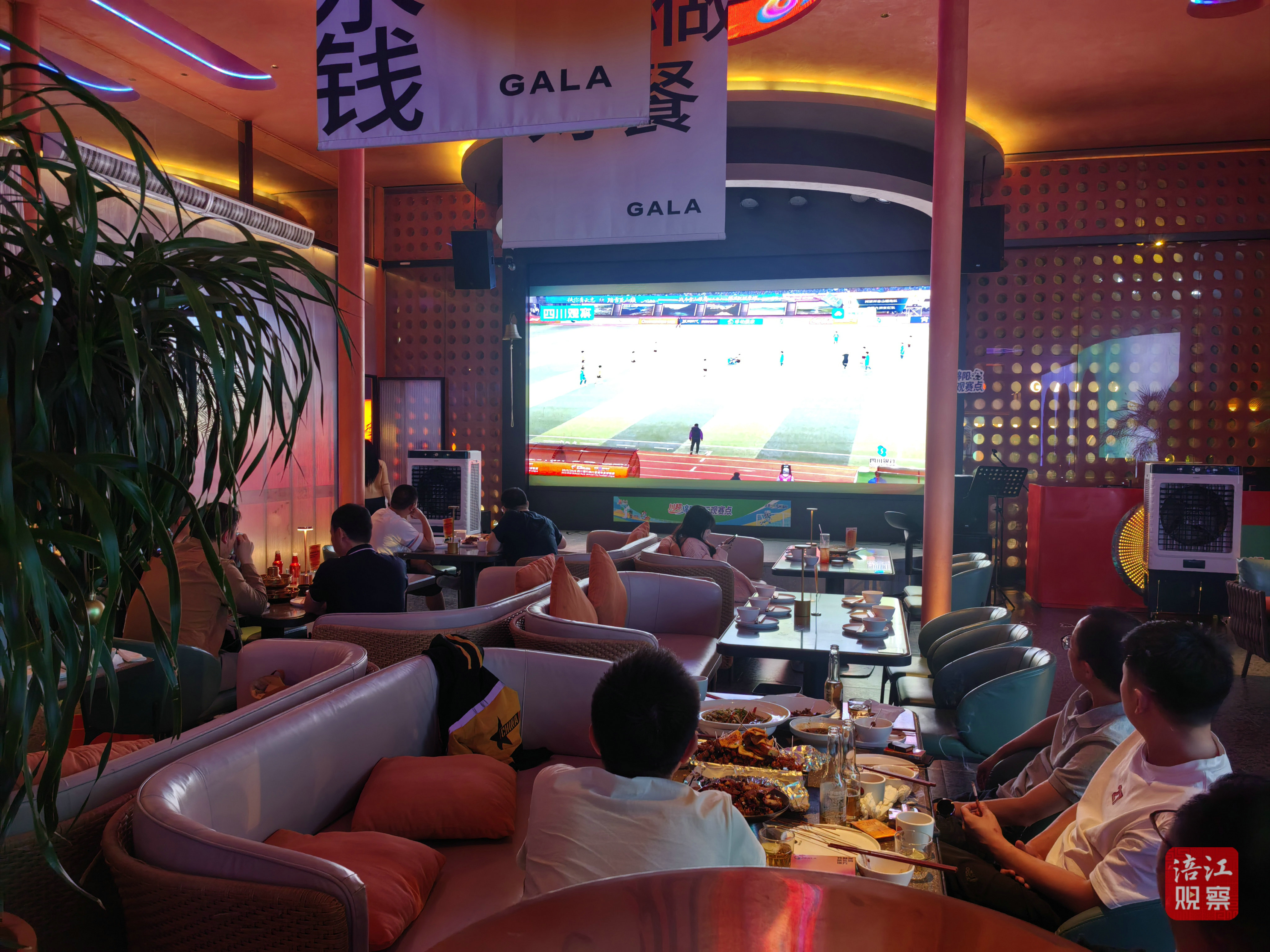 比賽期間,桃花島GALA音樂餐吧吸引了大量顧客和球迷在此相聚,享受美食的同時,觀看精彩比賽實況,為綿陽九洲長虹隊聲援。