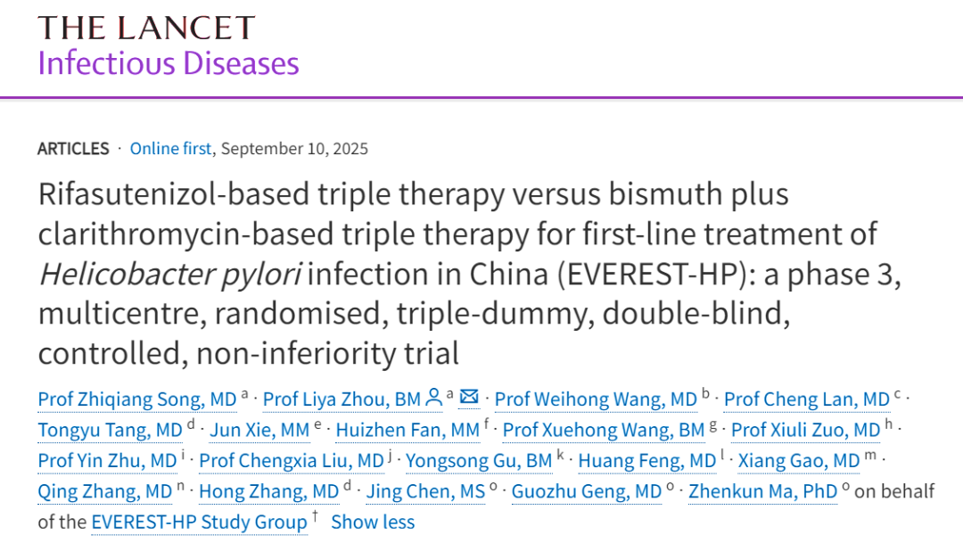 如今,這一嚴峻的公共衛(wèi)生難題有了破解之鑰:北京大學第三醫(yī)院消化科周麗雅/宋志強教授團隊帶領全國40家醫(yī)療機構消化疾病診療中心研究發(fā)現(xiàn),含利福特尼唑的三聯(lián)方案,讓幽門螺桿菌治療有望重新回歸更簡便的三聯(lián)方案時代,為全球幽門螺桿菌感染者帶來了全新的治療選擇。相關成果日前于《柳葉刀-感染病學》在線發(fā)表。