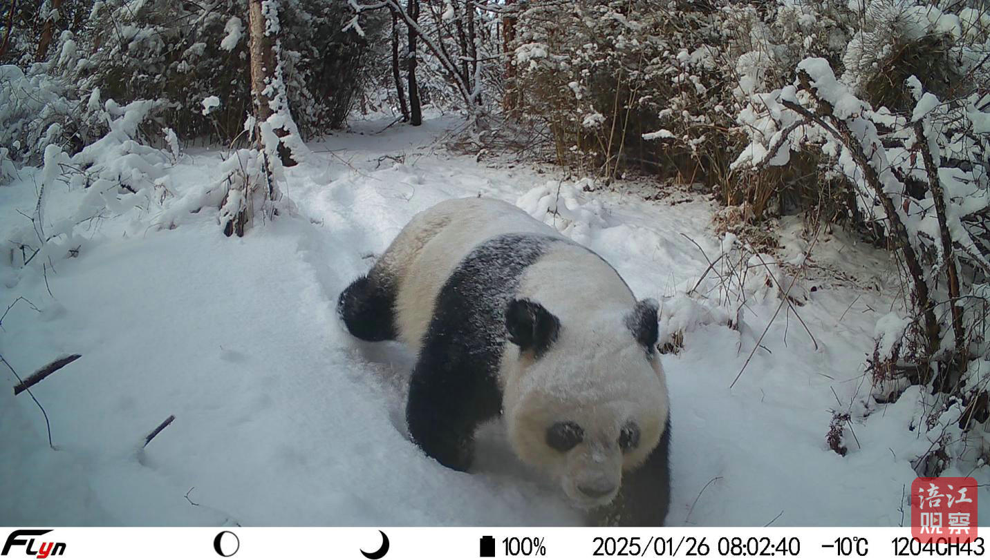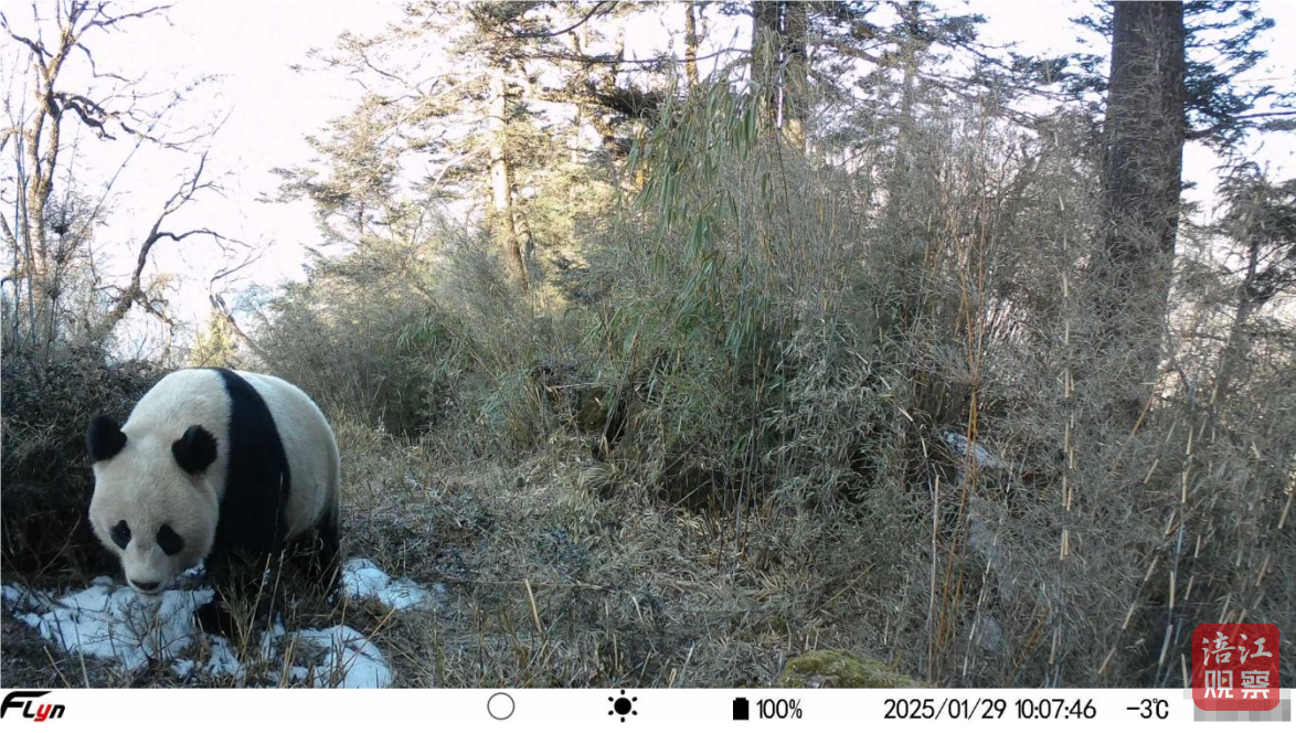 ↑大熊貓國家公園平武片區(qū)紅外相機拍攝的大熊貓