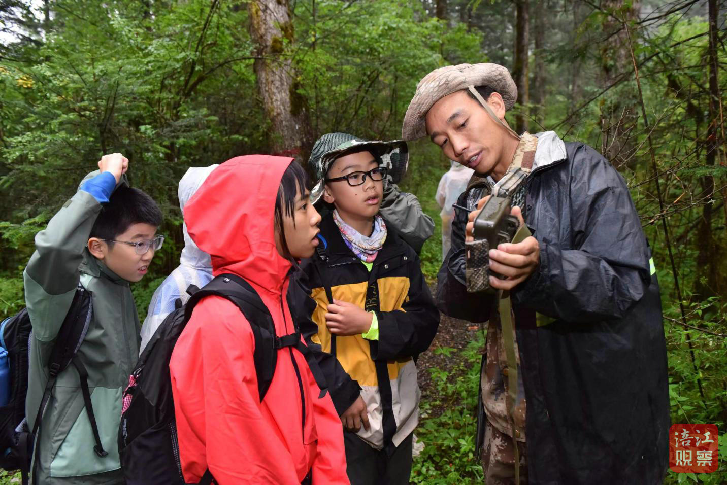 ↑巡護員李芯銳給孩子們講解紅外相機的工作原理